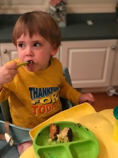 We recently started going to a weekly tiny tots music class at lovely Frying Pan Park. You might remember that I am a music teacher, and you might think it redundant to pay money to attend someone else's music class with my child. I will confess that I am enjoying this little covert operation and joyfully flying under the radar. I have no plans to ever tell this sweet woman that I, too, can operate the remote on a boombox sound system to cue the next song while also remembering exactly how many ducks came baaaaaaack. I love that the only thing I need to worry about for those 45 minutes is whether Arthur will indeed lick the egg shaker, or if he will instead spontaneously hurl it across the room. Part of the routine within the class is that each kid gets to have a turn to request a song that everyone sings and everyone plays a little instrument to accompany. Most kids are requesting things like "If You're Happy and You Know It" or "Wheels on the Bus" or "Twinkle Twinkle Little Star". I was curious what Arthur would say when it was his turn, and I fought the urge to intervene beforehand - you know, that little urge to somehow coach him or make sure he was gonna understand what the teacher was gonna ask him (a reaction that I've decided is 100% about me and not my child and I'm going to stop it, thank you very much). The teacher very warmly asked Arthur what song he wanted to sing and he, in his best little 2-yr old matter of factness said, "Lesssssss.....dooooo.......JINGLE BELLS!!!!!" So, we did. Christmas spirit is still alive and well around here.